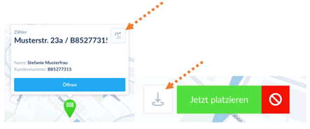 Soll der POI direkt zu Ihrem aktuellen Standort hüpfen, klicken Sie das Pfeilsymbol neben dem Button „Jetzt platzieren“.